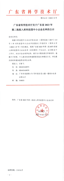 广东省2023年第2批拟入库科技型中小企业名单公示
